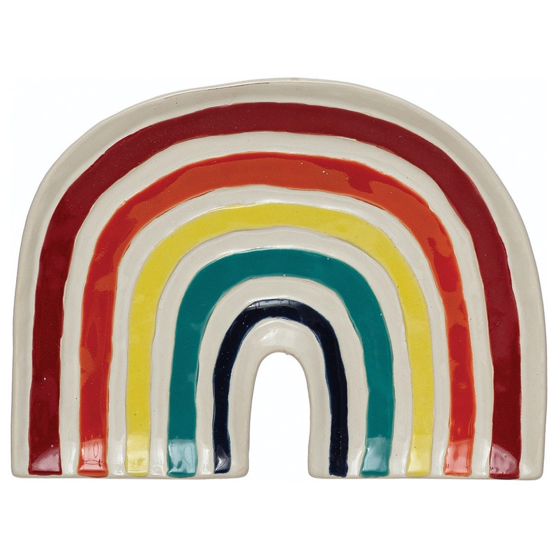 Multicolor hand-painted stoneware rainbow plate; Add a cheerful touch to any tablescape with this vibrant plate; Made from 100% stoneware; Plate measures 10″ L x 1″ W x 7″ H