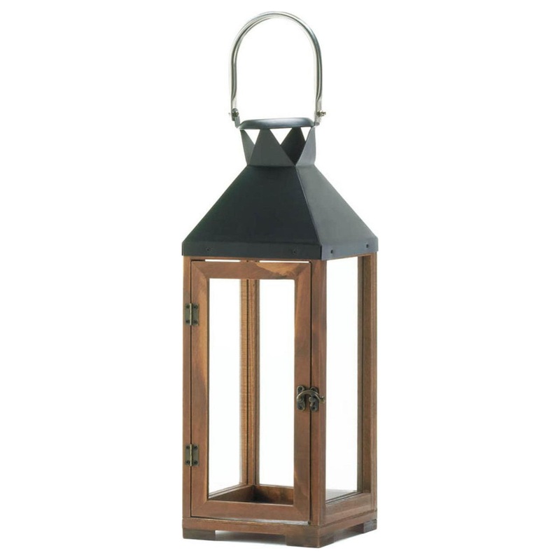HARTFORD LARGE CANDLE LANTERNThe harmony of elegant wood and sleek black metal makes this tall candle lantern a designer's dream come true. The clear glass panels let candlelight shine brightly, and the oversized stainless steel hanging loop is the perfect