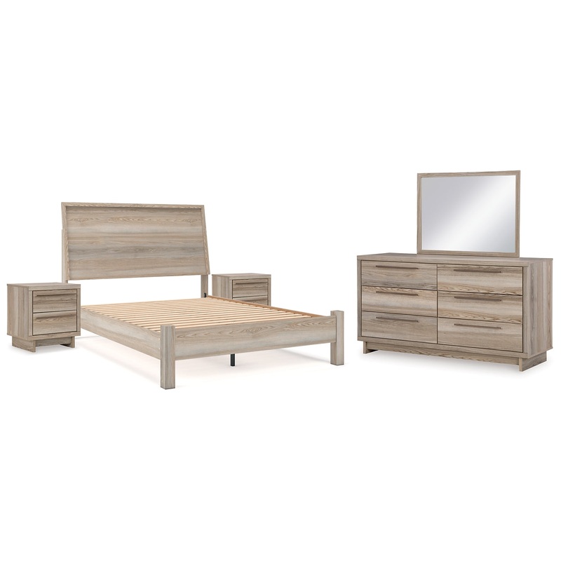 Hasbrick Queen Panel Bed with Mirrored Dresser and 2 Nightstands