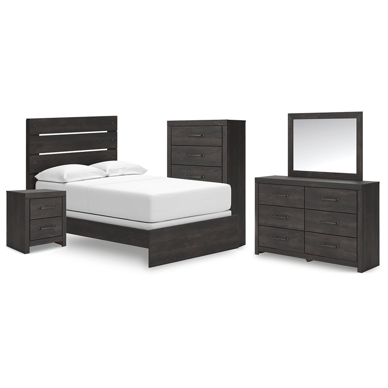 | Details | PCB2108B12: Includes panel headboard/footboard and rails, Made with engineered wood (MDF/particleboard/plywood) and decorative laminate for the right balance of affordability and durability , Charcoal finish over replicated oak grain with authentic touch, Decorative laminate replicates natural or man-made material surfaces with consistent color, pattern and texture, Foundation/box spring required, sold separately , Mattress available, sold separately, Minor assembly required, PCB2108B1: Includes dresser and mirror, Made with engineered wood (MDF/particleboard/plywood) and decorative laminate for the right balance of affordability and durability , Charcoal finish over replicated oak grain with authentic touch, Decorative laminate replicates natural or man-made material surfaces with consistent color, pattern and texture, Large-scale dark colored handles, 6 smooth-gliding drawers, Drawer interiors are lined with a faux linen laminate for a clean, finished look , Mirror attaches to back of dresser; can also be mounted on wall horizontally or vertically, Safety is a top priority, clothing storage units are designed to meet the most current standard for stability, ASTM F 2057 (ASTM International), Drawers extend out to accommodate maximum access to drawer interior while maintaining safety, Minor assembly required, PCB2108-46: Made with engineered wood (MDF/particleboard/plywood) and decorative laminate for the right balance of affordability and durability, Charcoal finish over replicated oak grain with authentic touch, Decorative laminate replicates natural or man-made material surfaces with consistent color, pattern and texture, Large-scale dark colored handles, 5 smooth-gliding drawers, Drawer interiors are lined with a faux linen laminate for a clean, finished look, Safety is a top priority, clothing storage units are designed to meet the most current standard for stability, ASTM F 2057 (ASTM International), Drawers extend out to accommodate maximum access to drawer interior while maintaining safety, Minor assembly required, PCB2108-92: Made with engineered wood (MDF/particleboard/plywood) and decorative laminate for the right balance of affordability and durability, Charcoal finish over replicated oak grain with authentic touch, Decorative laminate replicates natural or man-made material surfaces with consistent color, pattern and texture, Large-scale dark colored handles, 2 smooth-gliding drawers, Drawer interiors are lined with a faux linen laminate for a clean, finished look, 2 slim-profile USB-C charging ports, Power cord included; UL Listed, Minor assembly required, |