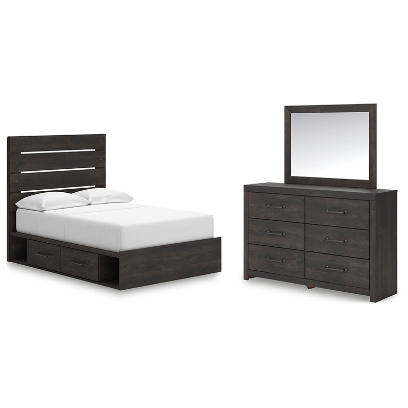 Hollivern Full Panel Bed with Storage with Mirrored Dresser