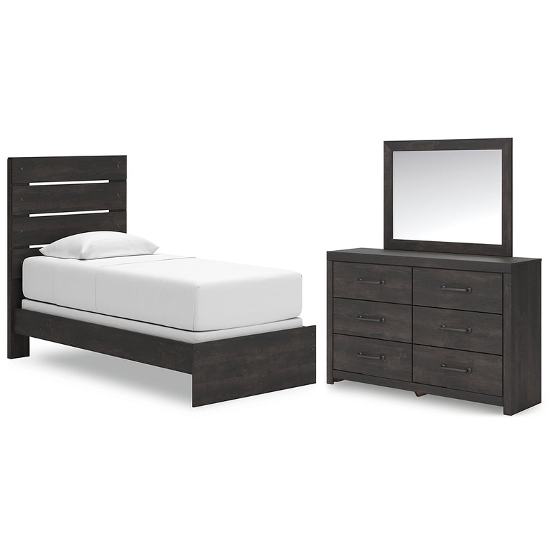 Hollivern Twin Panel Bed with Mirrored Dresser