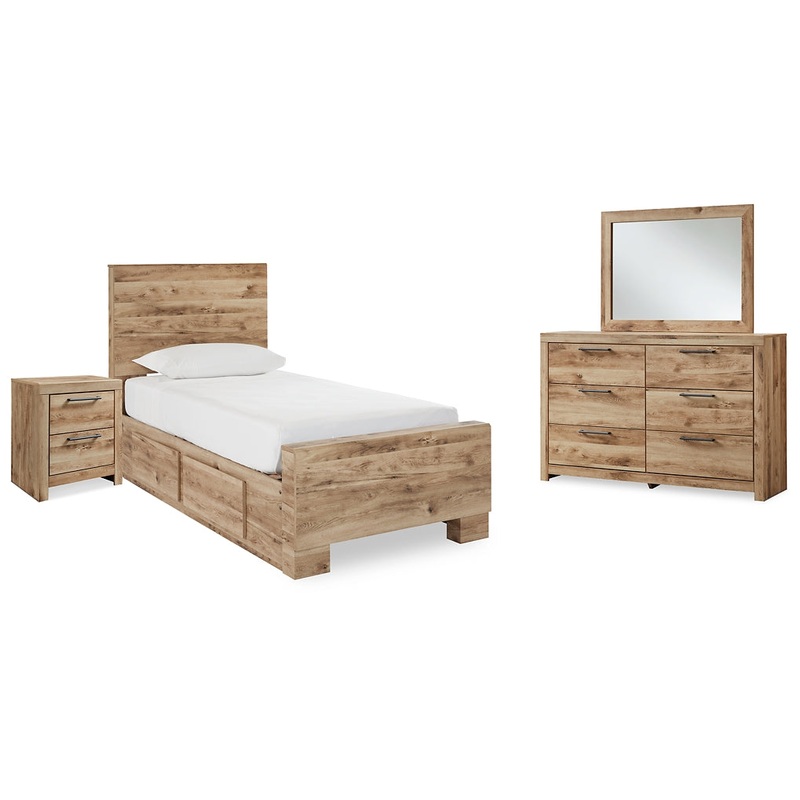 Hyanna Twin Panel Bed with Storage with Mirrored Dresser and Nightstand