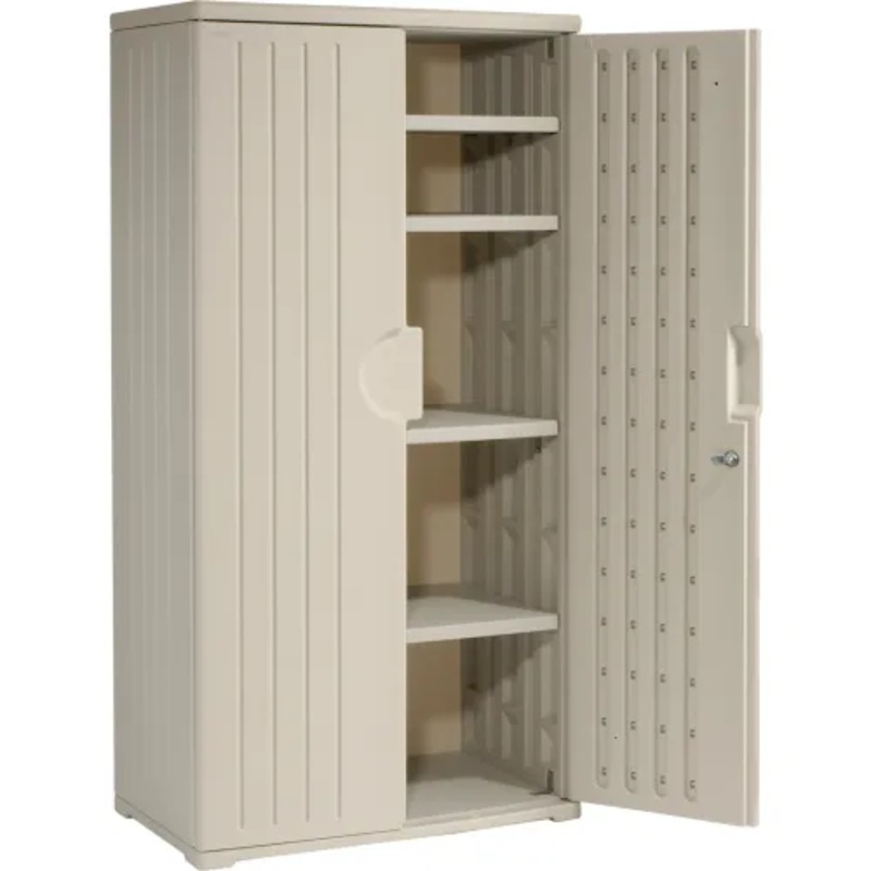 These plastic cabinets offer keyed locks and 125 lb. capacity shelves for added strength. 1 fixed shelf for stability. Dent and scratch resistant, rustproof Resinite with double walls. Easy assembly. Made in the USA.