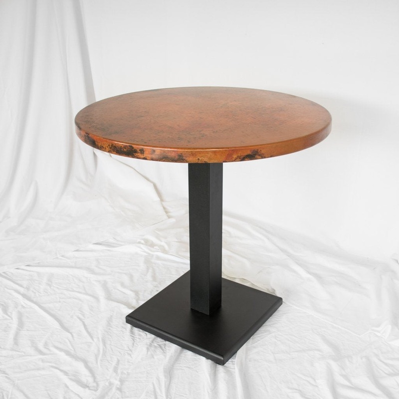 The Imogene Bistro Table is a beautifully simple mix of copper and a black iron base. Great for breakfast nooks, smaller dining spaces and restaurants. A commercial grade, matte black powder-coated, cast iron base is paired with a 30" round hand-crafted co