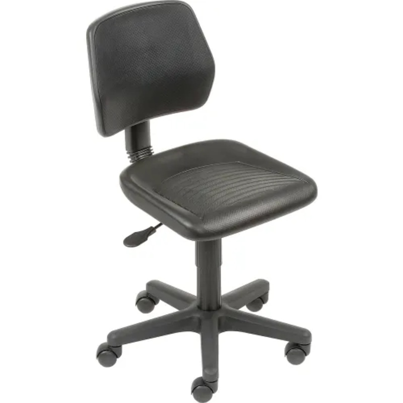 This Industrial Polyurethane Chair Is Built To Last And Offers Comfortable Seating For An Affordable PriceThis office chair is upholstered in black integral skinned urethane foam that is wear and puncture resistant. Multi-use polyurethane chair has an 18"W