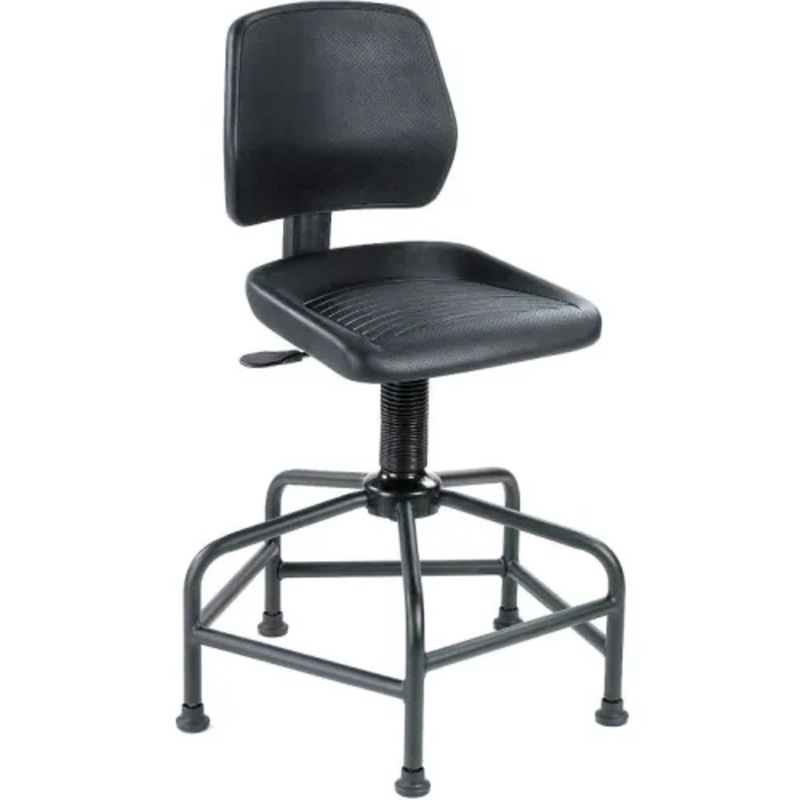 Increase employee comfort and productivity with a suitable task stool, the Interion Task Stool. It is ideal for repetitive task work that demands long durations of attention in one location. Constructed of wear and puncture-resistant black integral skin urethane foam. 18″W x 17″D x 1-1/2″ thick seat features a waterfall design that takes pressure off of the knees. Seat height adjusts from 22″ – 27-1/2″ for personalized positioning. Adjustable height 17″W x 12″H back helps maintain a proper posture. Spider base has a 22″ diameter and a 5 footrest positions. 250 lbs. capacity. Easy assembly. 2-Year Limited Warranty.