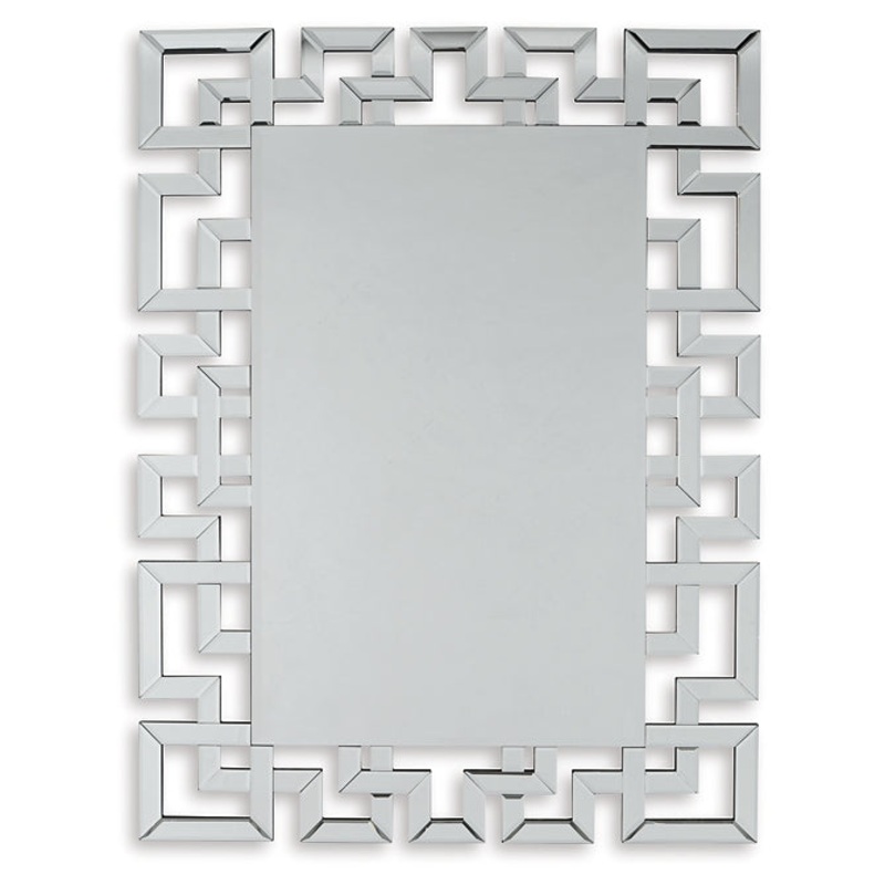 Wowing with a linear Greek key frame, this wall mirror is a beautiful reflection of your style. Whether hung vertically or horizontally, this alluring mirror is on the cutting edge of cool.Cut glass framed accent mirror with 3/4" bevelGreek key designD-rin