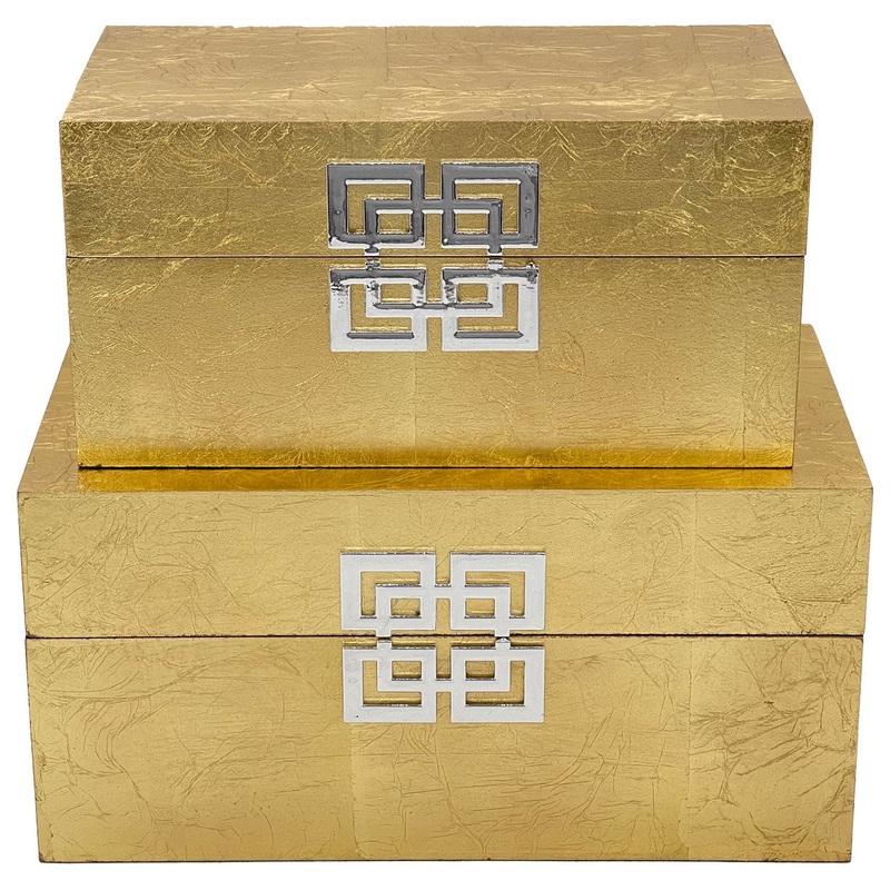 This set consists of two jewelry boxes and it is the perfect addition to your home. It is hand detailed with a gold leaf finish made out of poplar with a fabric lining. This piece is beautiful together or separately wherever you see fit. Model # (MPN)FZ640