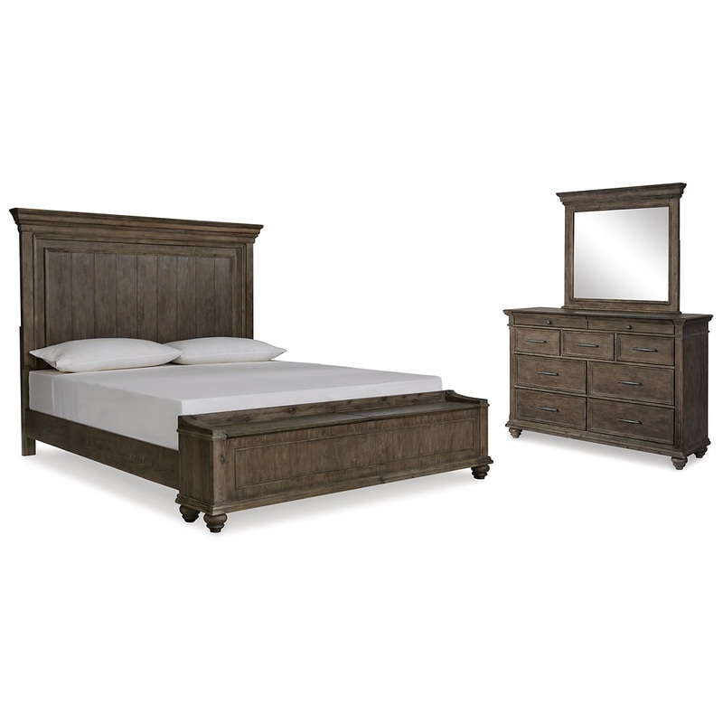 Johnelle King Panel Bed with Storage, Dresser and Mirror