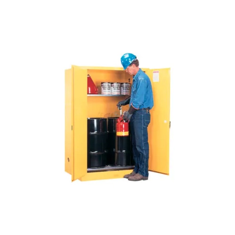 Drum Storage Flammable CabinetsVertical Storage Cabinet - Two 30 Gallon Drums - Manual CloseJustrite's Drum Storage Cabinet safely houses 30 gallon drums. Vertical Storage Cabinet includes a half-depth shelf for added storage and permits access to drum pum