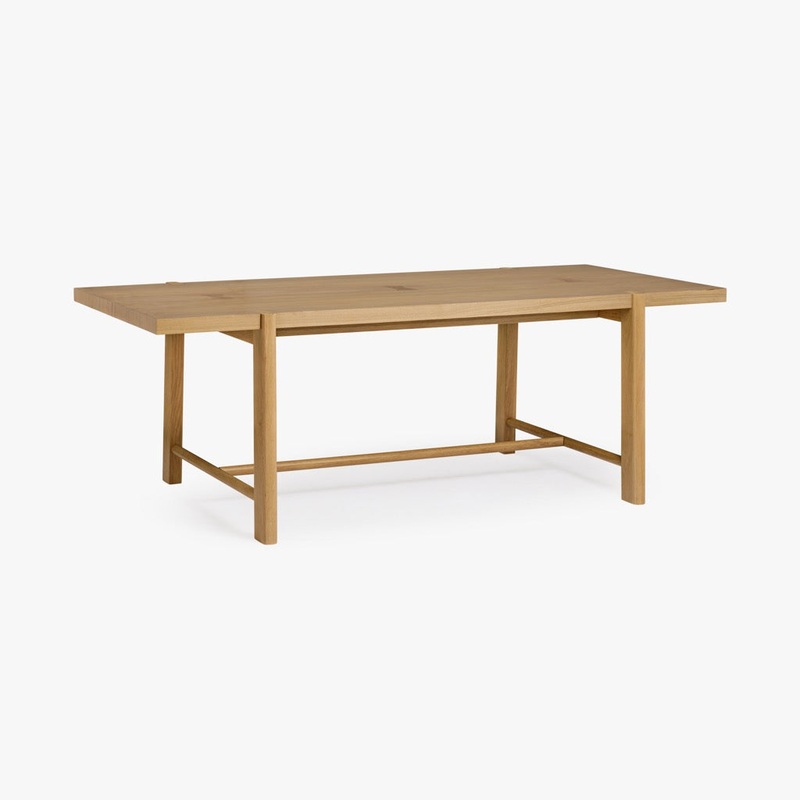 European inspired farmhouse dining table crafted from solid oak, oak veneers and rubberwood, in a light, modern finish.