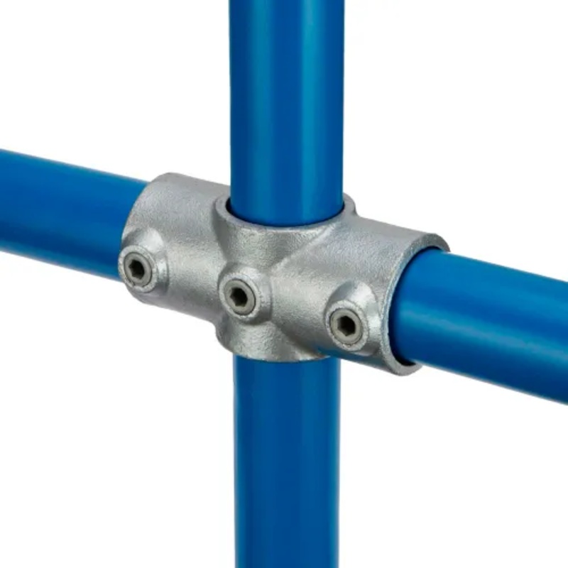 Kee Klamp FittingsTwo Socket Cross Usually paired with Type 25 to give a 90 joint between the middle rail and an intermediate upright on safety railing. The upright passes through the fitting.