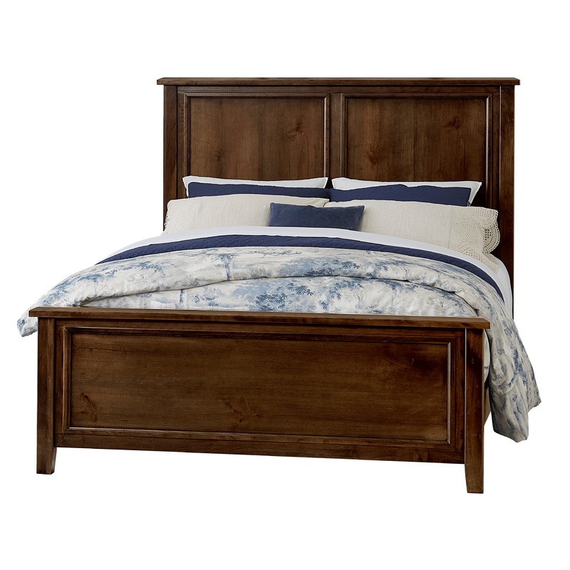 The Amish bed features a framed two panel headboard with clean lines and simple angles. With rustic cherry; we have left in many of the cherry knots to accentuate the unique grain pattern only found in American cherry lumber.