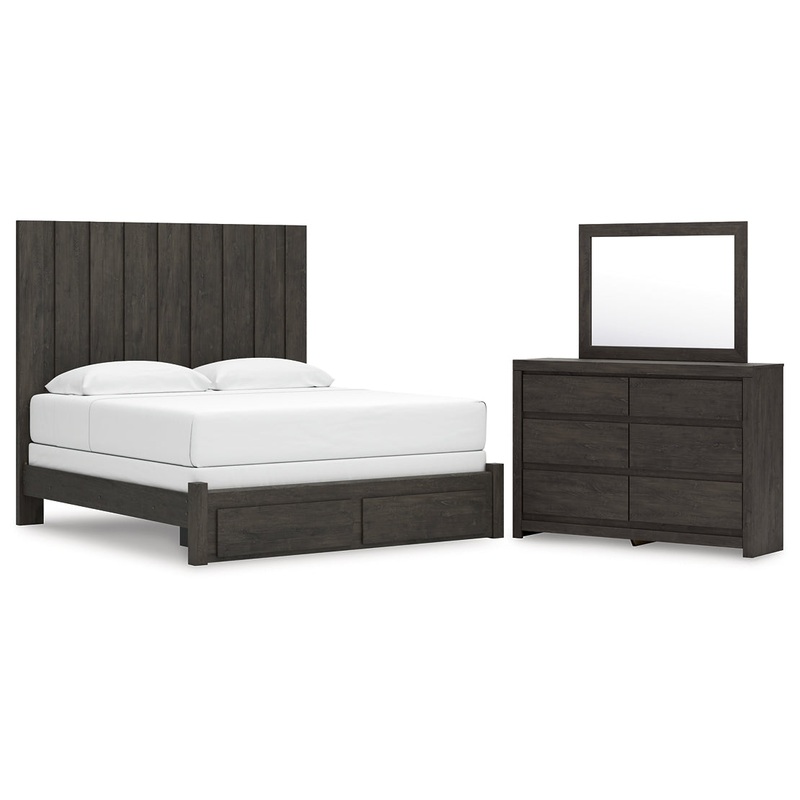King Panel Storage Bed with Mirrored Dresser