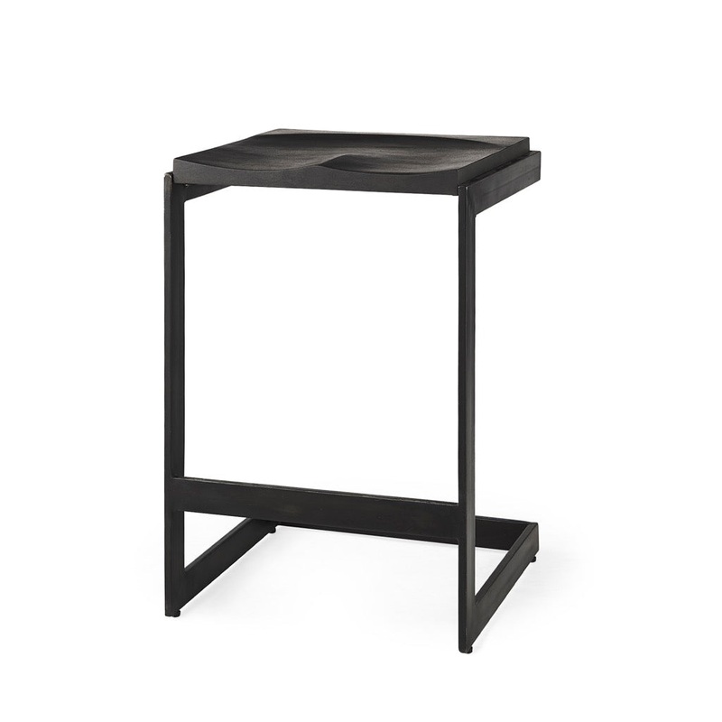 - Solid Wood and Metal Construction: This modern counter stool features a Mango wood seat that rests on an iron frame in a C-shape design. A footrest is neatly incorporated into the base and the seat is gracefully indented to provide additional comfort, while keeping with its minimal aesthetic.