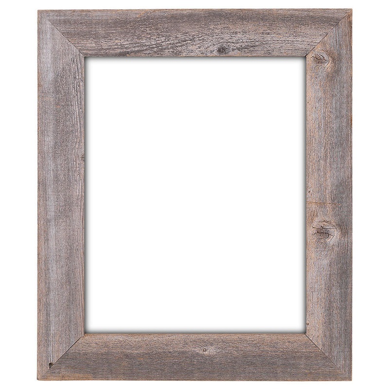 This 16-by-20 inch frame is manufactured from 100% authentic weathered wood allowing the rustic charm of the natural knots, nail holes and color variations to show through. This is a flat frame with a 3.25-inch molding to give it a unique look. All frames