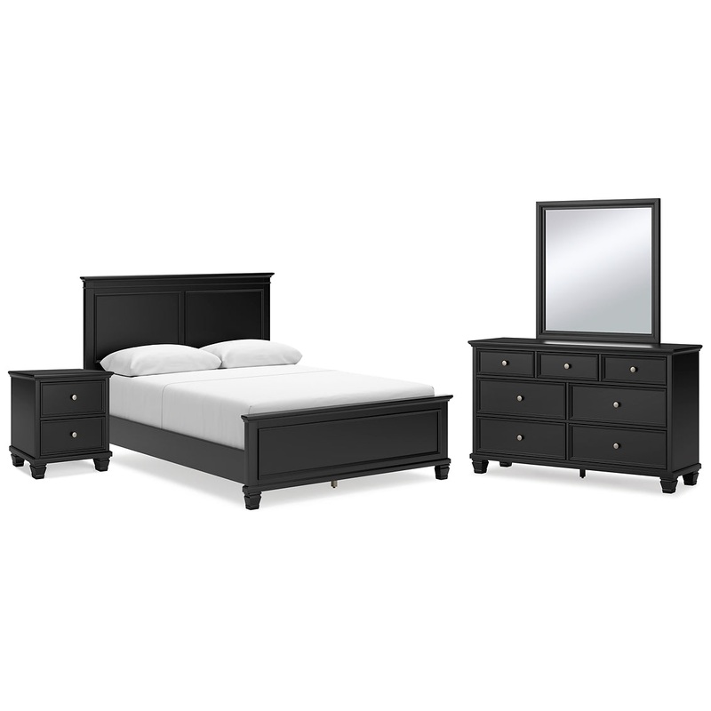 Lanolee Queen Panel Bed with Mirrored Dresser and Nightstand