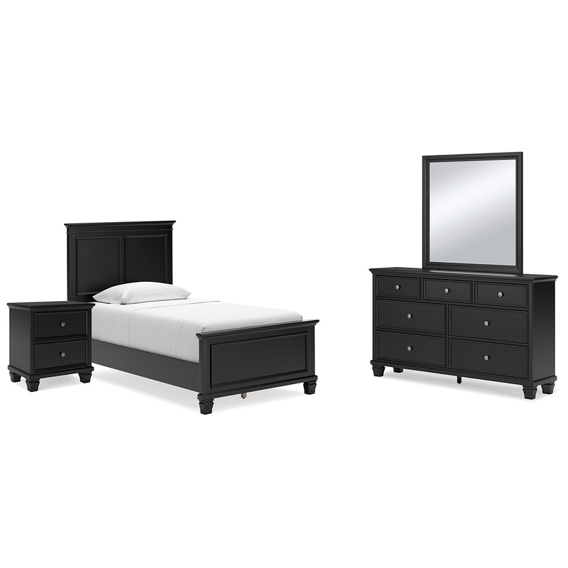 Lanolee Twin Panel Bed with Mirrored Dresser and Nightstand