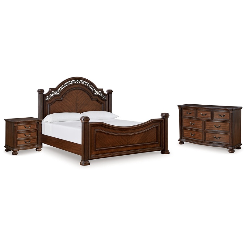 Take inspiration from the traditional luxury of this bedroom package. Classic with a rich cherry brown finish, its stately presence graces your room with an air of opulence. Your restful retreat has never been so refined.