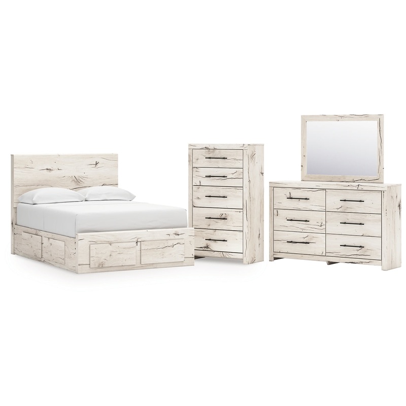 Lawroy Full Panel Storage Bed with Mirrored Dresser and Chest