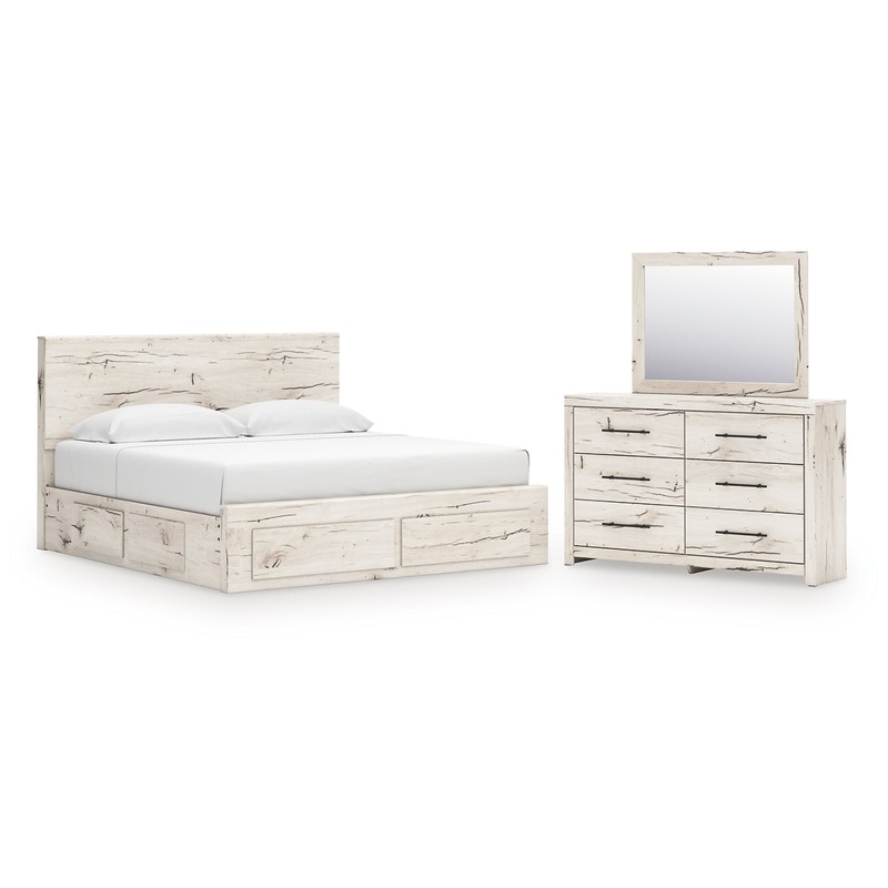 Lawroy King Panel Storage Bed with Mirrored Dresser