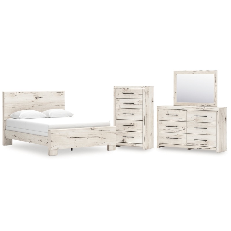 Lawroy Queen Panel Bed with Mirrored Dresser and Chest