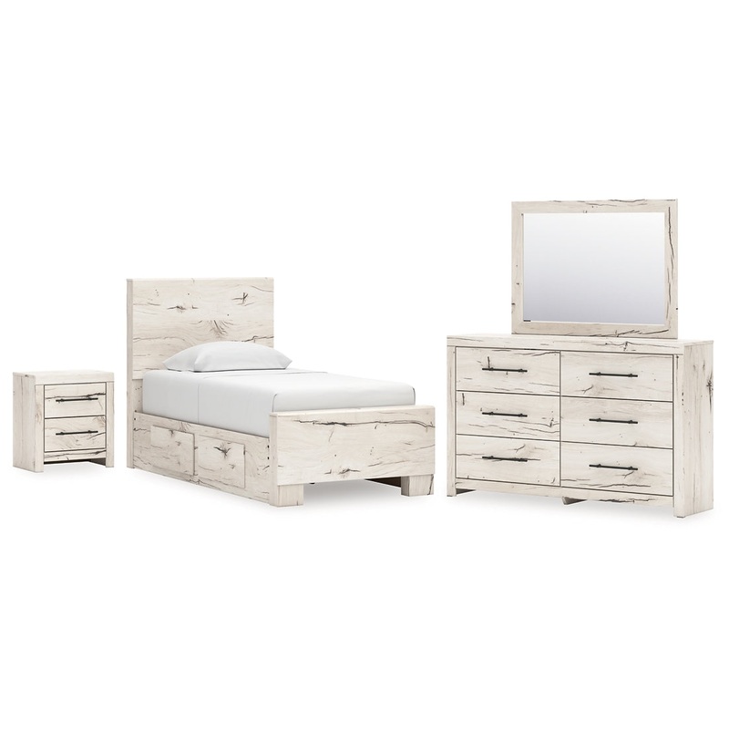 Lawroy Twin Panel Bed with Mirrored Dresser and Nightstand