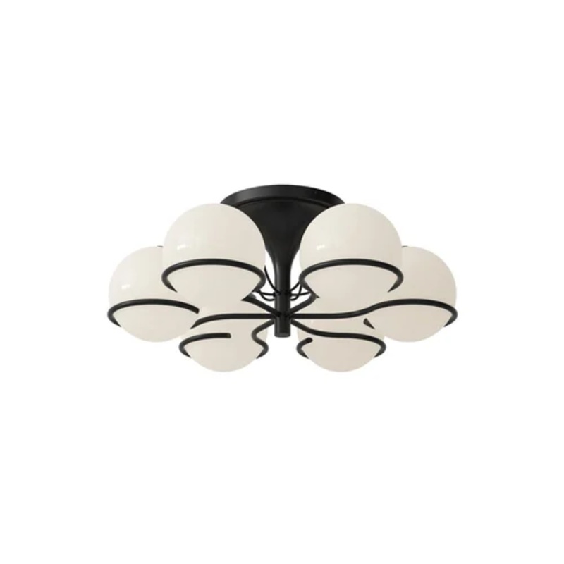 Le Sfere Model 2042/6 Ceiling LampModel 2042/6 is a stylish ceiling lamp designed by the famous Italian designer Gino Sarfatti and produced by the Denmark brand Astep. Opaline glass diffuser, steel structure.An elegant ceiling luminaire from the Le Sfere s