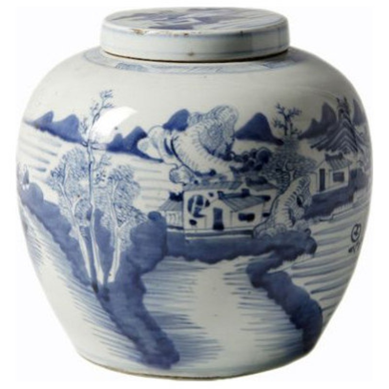 Blue And White Porcelain Ancestor Jar Landscape Design Features -Material: Porcelain -Color: Blue, White -Product Dimension: 9 x 9 x 9This Is A Hand Made Item, Due To This, There May Be Slight Variances In The Size And Color Of The Product, This Is Not A D
