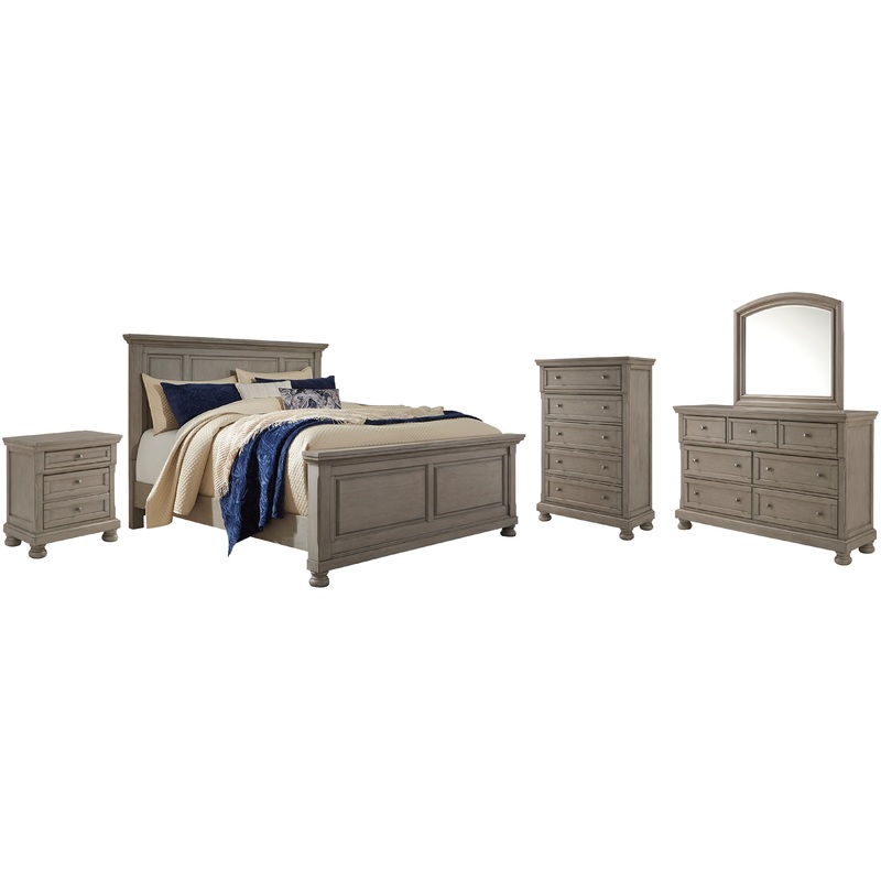 Lettner Queen Panel Bed with Mirrored Dresser, Chest and Nightstand