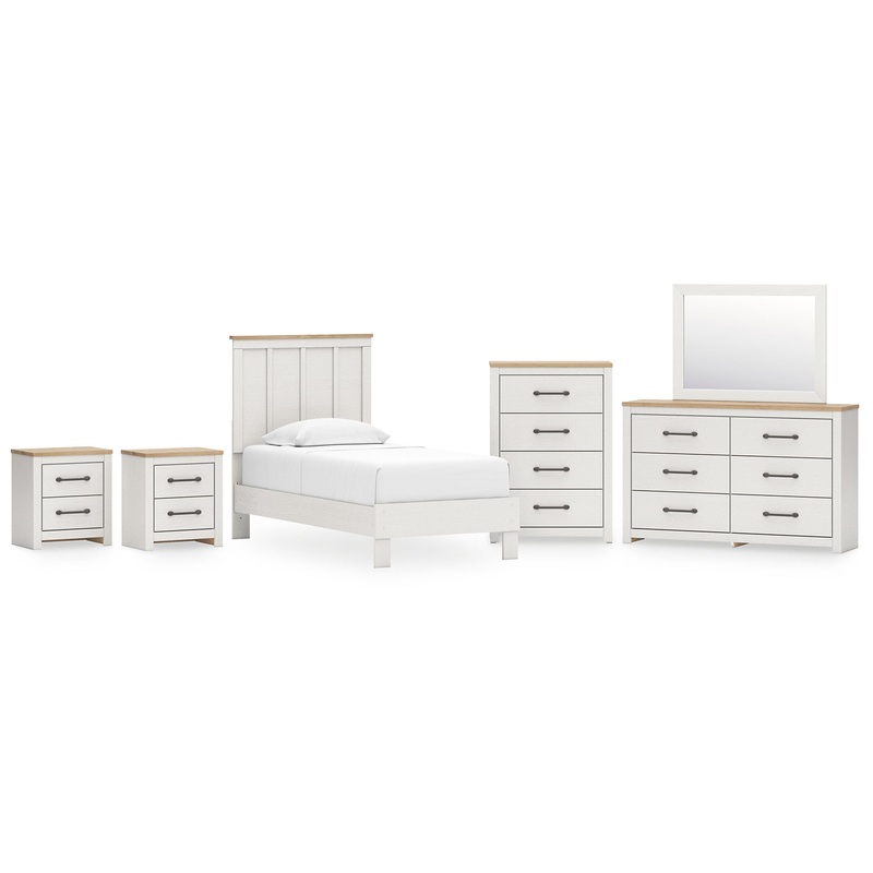 Linnocreek Twin Panel Bed with Mirrored Dresser, Chest and 2 Nightstands