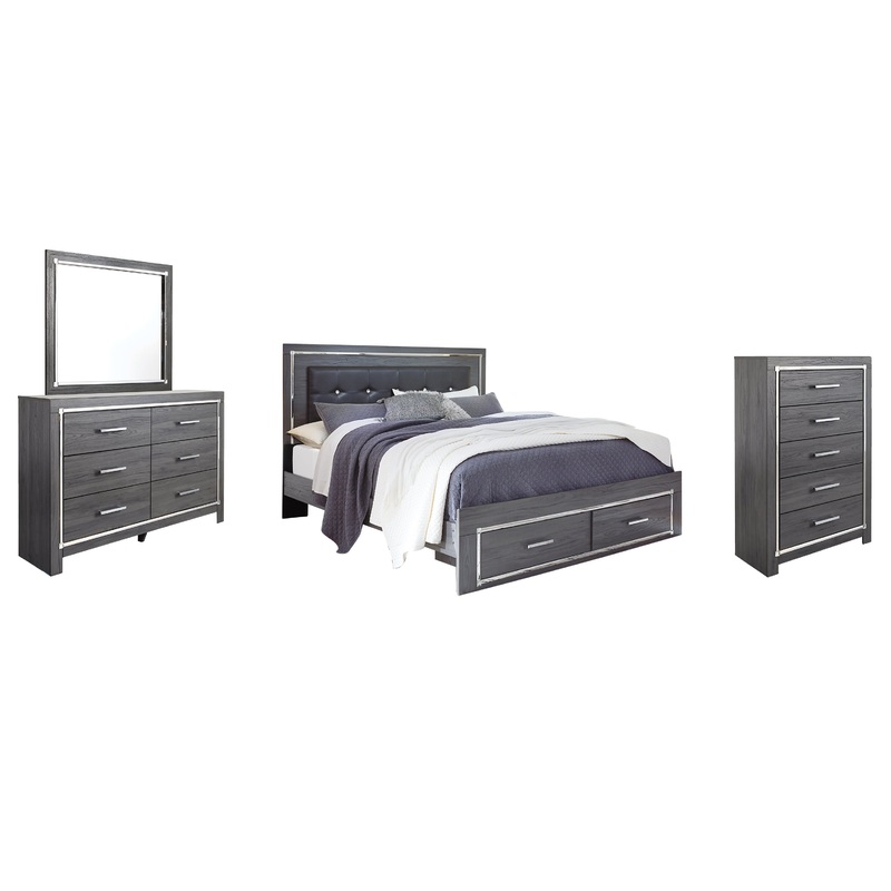 Lodanna King Panel Bed with 2 Storage Drawers with Mirrored Dresser and Chest