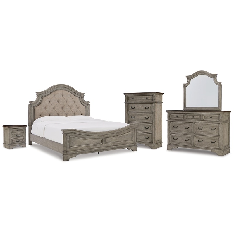 Lodenbay King Upholstered Panel Bed, Dresser, Mirror, Chest and Nightstand