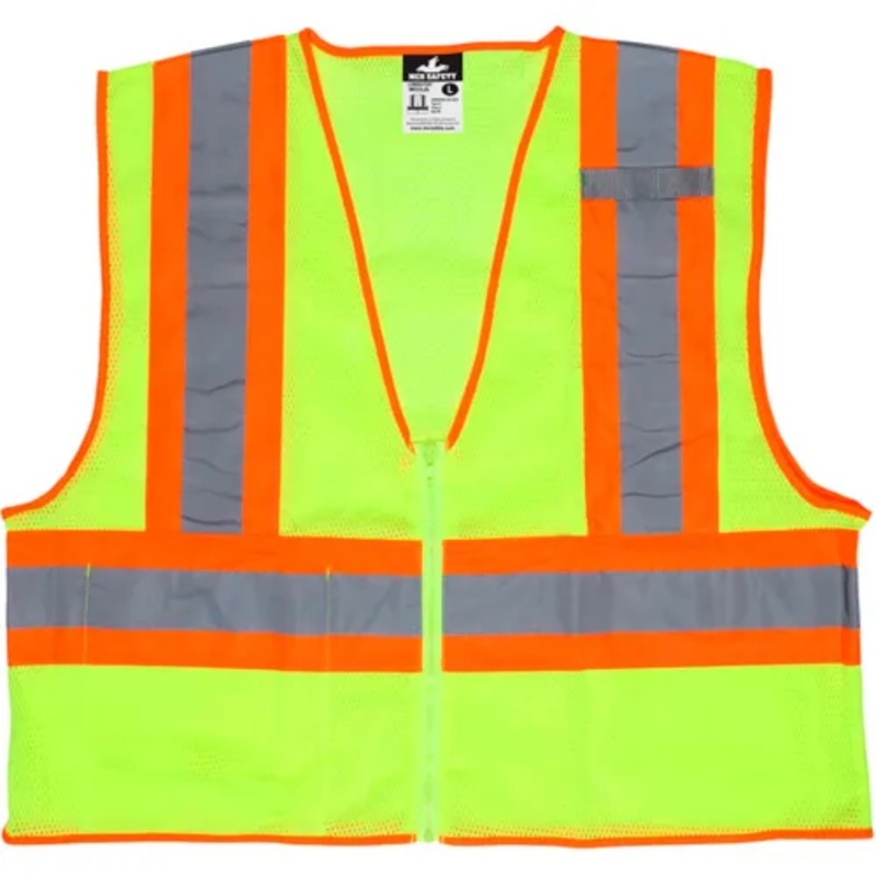 MCR Safety stocks a variety of ANSI rated safety vests for your high visibility needs. With an assortment of styles and colors, you can choose a garment that ensures that you show up in a variety of complex backgrounds. It can be a matter of life or death, so be seen in MCR Safety’s Hi-Vis apparel. The WCCL2L is an ANSI/ISEA Class 2 safety vest made of fluorescent lime polyester mesh material. It features 4.5″ orange/silver reflective stripes and a zipper front closure. It also features 2 inner pockets.