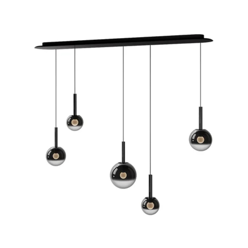 Luna Sospeso Cloud is a linear lamp composition that plays with light to create mysterious works of art on walls. Thanks to Occhio fireball, the revolutionary light source created for these lamps, it literally seems to float inside the mirrored sphere. This composition allows the light of all five lamps to be coordinated simultaneously, and is perfect as accent lighting on tables, desks, or in large living rooms or offices. Thanks to the ‘occhio air’ dimming system, the intensity can be adjusted at will via app. All the beauty of the Luna series in an elegant and beautiful composition.