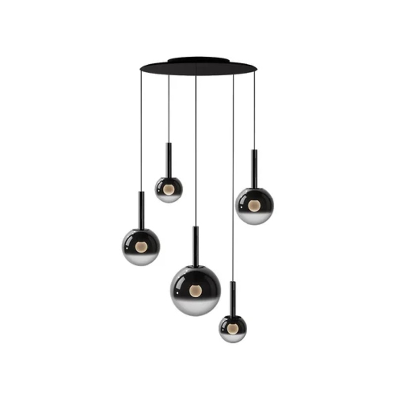 Luna Sospeso Cloud is a lamp composition that plays with light to create mysterious works of art on walls. Thanks to Occhio fireball, the revolutionary light source created for these lamps, it literally seems to float inside the mirrored sphere. This composition allows the light of all five lamps to be coordinated simultaneously, and is perfect as accent lighting on tables, desks, or in large living rooms or offices. Thanks to the ‘occhio air’ dimming system, the intensity can be adjusted at will via app. All the beauty of the Luna series in an elegant and beautiful composition.