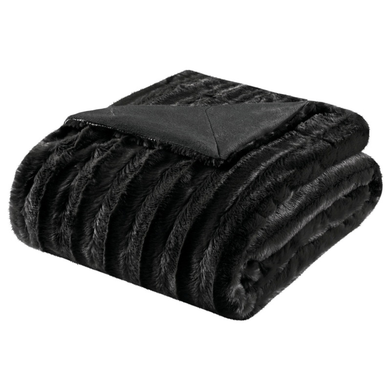 Madison Park Solid Stripe Plaited Brushed Long Fur Knitted Throw – Contemporary – Throws – by Olliix