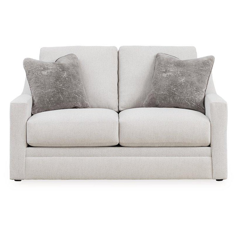 Clean lines and a streamlined silhouette define the architectural attitude of this loveseat. Textured accent pillows in complementary colors add subtle contrast. The loveseat's plush reversible cushions beckon you to sit down, get comfy and relax completel