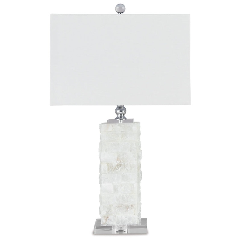 Bring a slice of paradise home with you. This lamp takes inspiration from the coastal chic trend with its uniquely crafted base, formed with chunks of white alabaster. How fashion-forward.Made of alabaster and acrylic with a rectangular hardback shade3-way