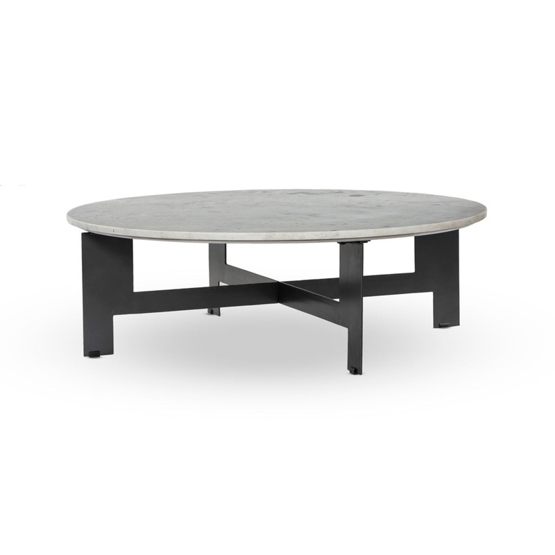 This Marble Round Coffee Table with Iron base offers a stunning centerpiece for any living room. Expertly made from polished white marble and a sturdy iron base, this coffee table provides a sophisticated and attractive aesthetic.