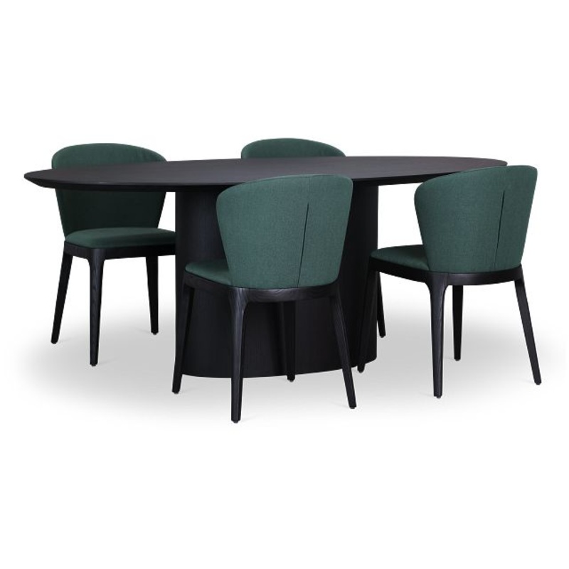 Margo Two-tone Rect Table & 4 Beige Upholstered Chairs