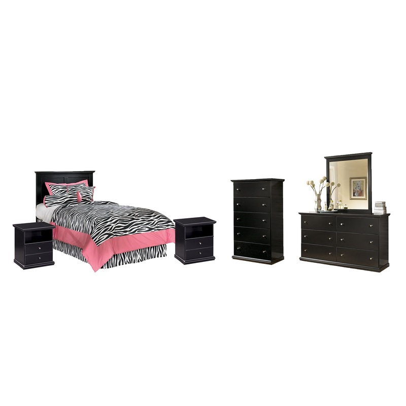Maribel Twin Panel Headboard Bed with Mirrored Dresser, Chest and 2 Nightstands