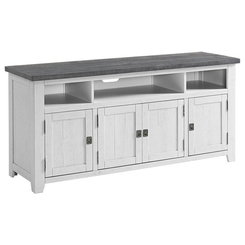 Martin Svensson Home Foundry 65″ TV Stand White Stain with Gray Top – Farmhouse – Entertainment Centers And Tv Stands – by Homesquare