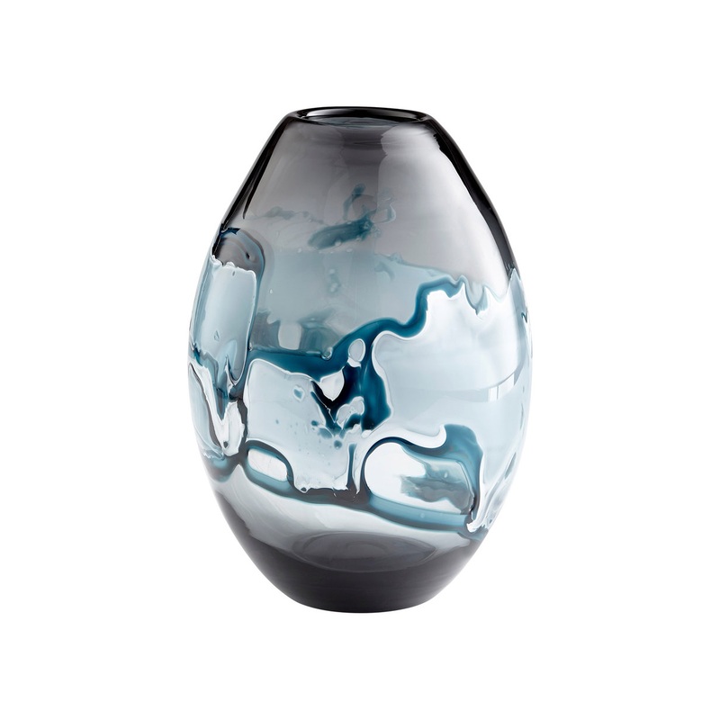 This Vase from the Mescolare collection by Cyan Design will enhance your home with a perfect mix of form and function. The features include a Blue And White finish applied by experts. -Finish: Blue And White -Material: Glass -Width: 10.50 in. -Height: 14.5