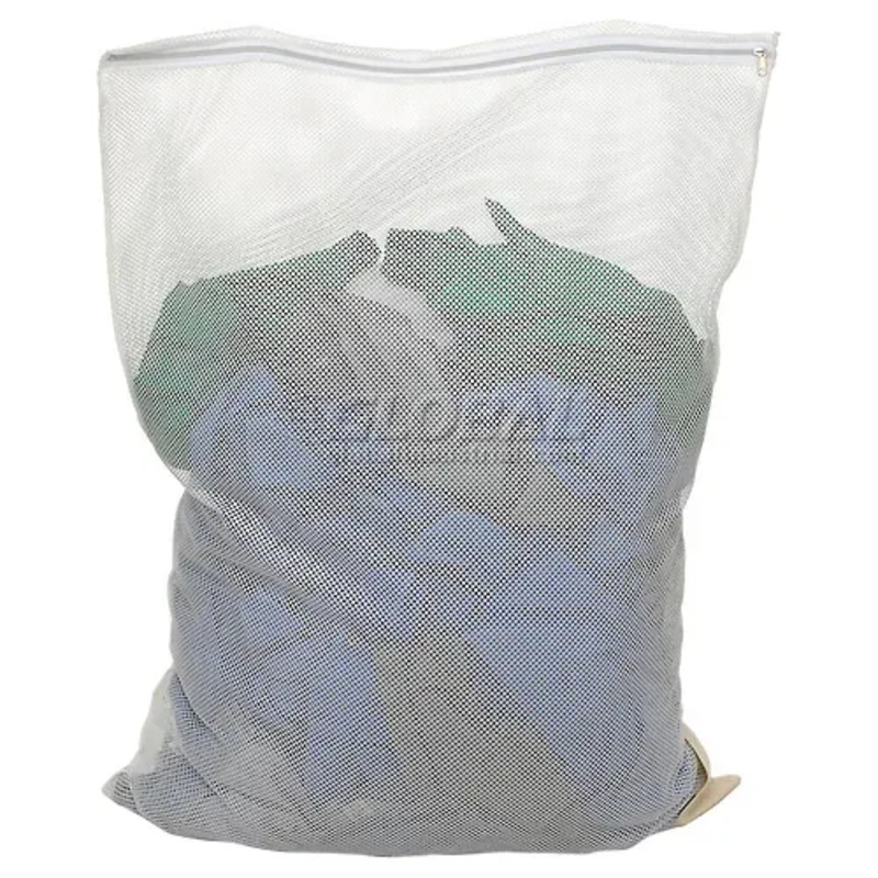 18" x 30" White Polyester Mesh Bag With Nylon Zipper ClosureMesh laundry bags feature zipper closure to ensure laundry stays packed in its bag for convenient and sanitary handling. Mesh laundry bags are designed for washing clothing and linens without remo