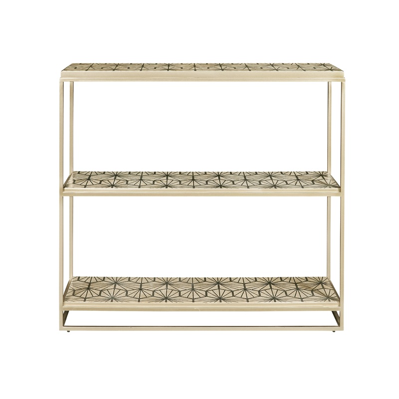 Inspired by home dcor tiles, this charming, versatile console displays an intricate, printed pattern on all surfaces and is supported by a sturdy metal frame. The sleek, minimalist, two-tiered structure provides ample space for displaying decorative items,