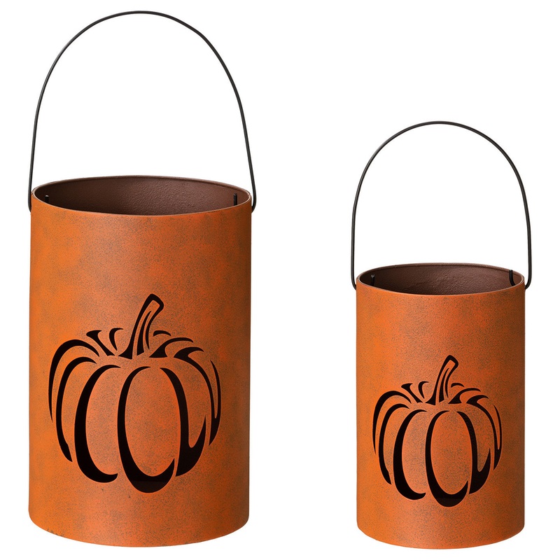 Metal Cutout Pumpkin Bucket, Set of 2 – Farmhouse – Candleholders – by Glitzhome