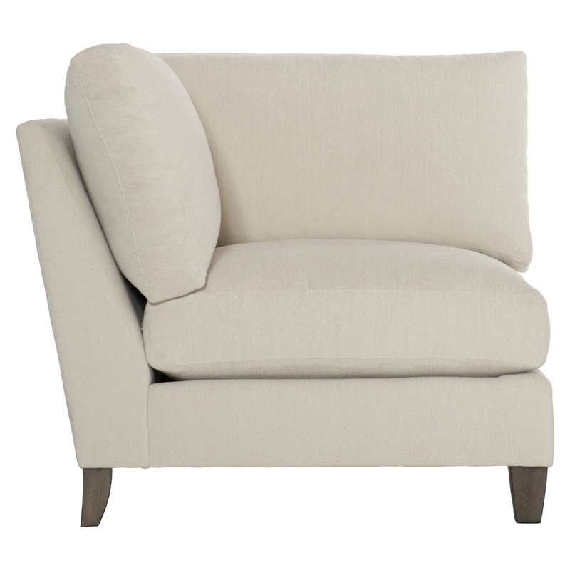 Stylish and modern with deep, comfortable seating, the Mila corner chair achieves unprecedented comfort and timeless style. Natural fabric combines with relaxed tailoring to deliver a look that is both casual and sophisticated. Sleek tapered legs contribute to the contemporary appeal of this plush chair.
