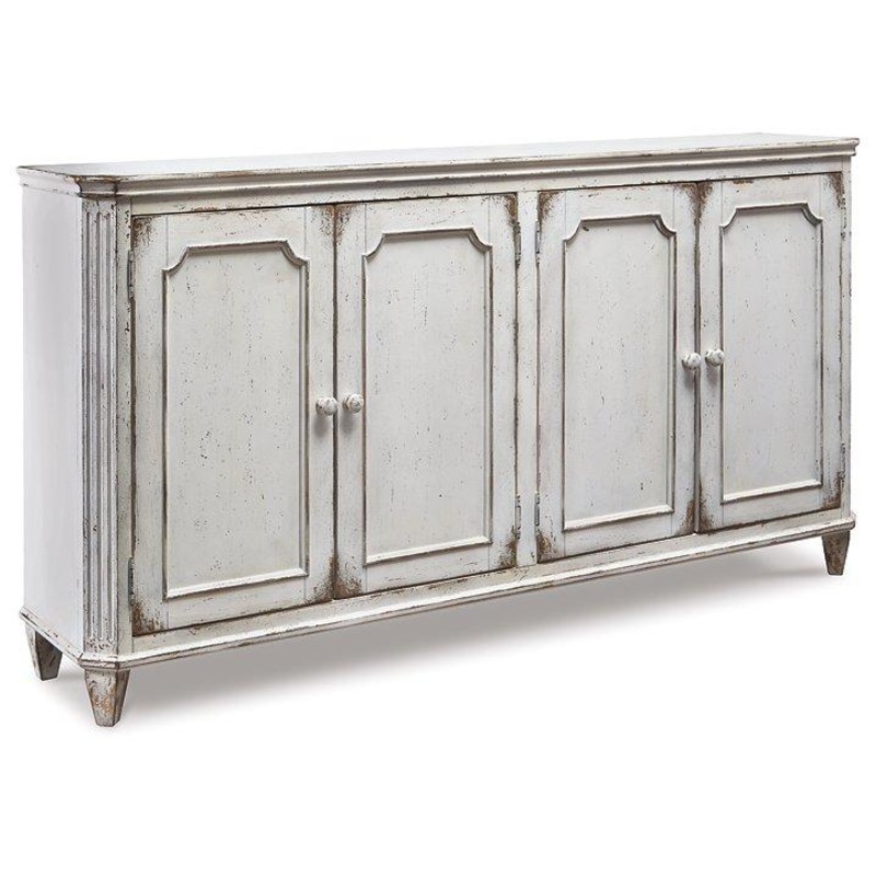 With its distressed vintage paint finish, fluted details and French provincial mouldings, this exquisite cabinet is sure to grace your space in such a trs chic way. Adjustable shelved storage is abundantly practical, be it in a dining room, living room or entryway.